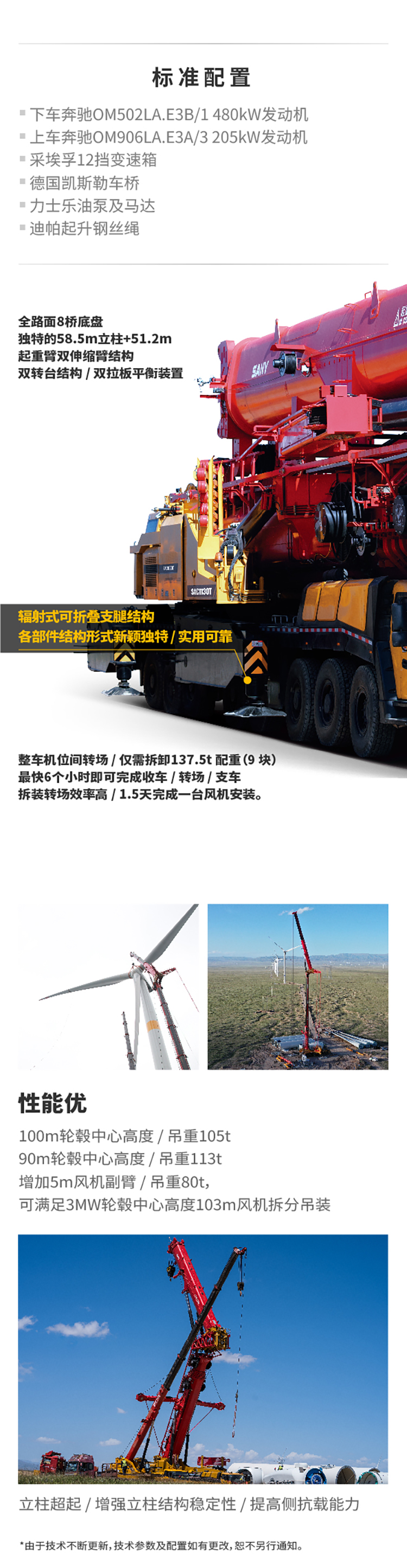 可满足3MW轮毂中心高度103m风机拆分吊装